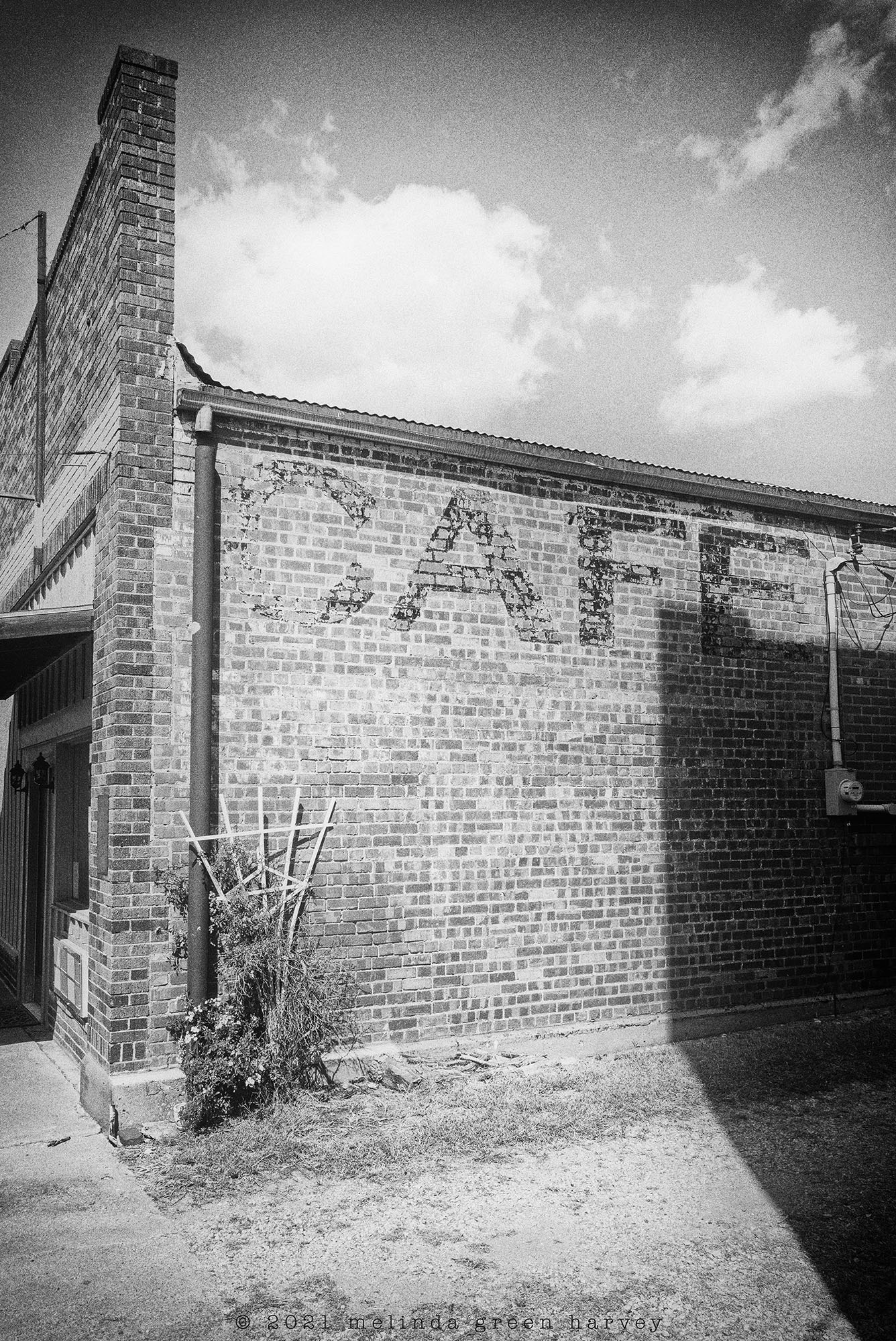 Archer City used to be the home of a lot of bookstores…or, rather, one bookstore that was housed in several buildings. The bookstores and their owner – Larry McMurtry – are gone, and the rest of the town seemed more faded than I remembered. And that includes the C on this sign which is more faded than the rest of the word.