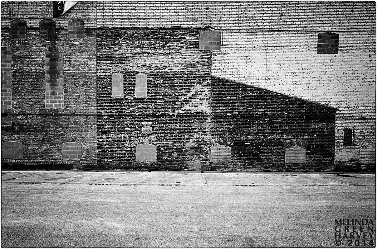 Naturally, I noticed all these rectangles on the side of the church – you know how much I like to find rectangles! – but in this particular case, I am actually more interested in those two rocks, leaning against the air conditioner. They look like tiny headstones. They look as though they were placed there on purpose. They look like mirror images of each other.