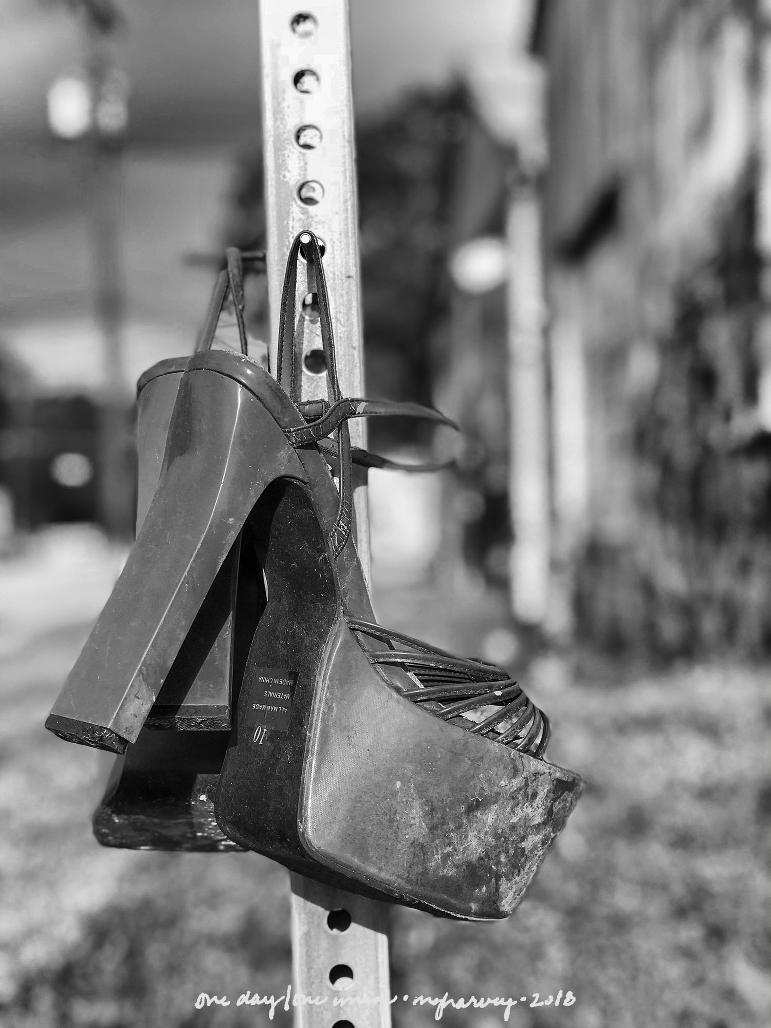 So, these shoes. These giant shoes that I found hanging on a stop sign on Fabrication Avenue in Dallas. Goodness.