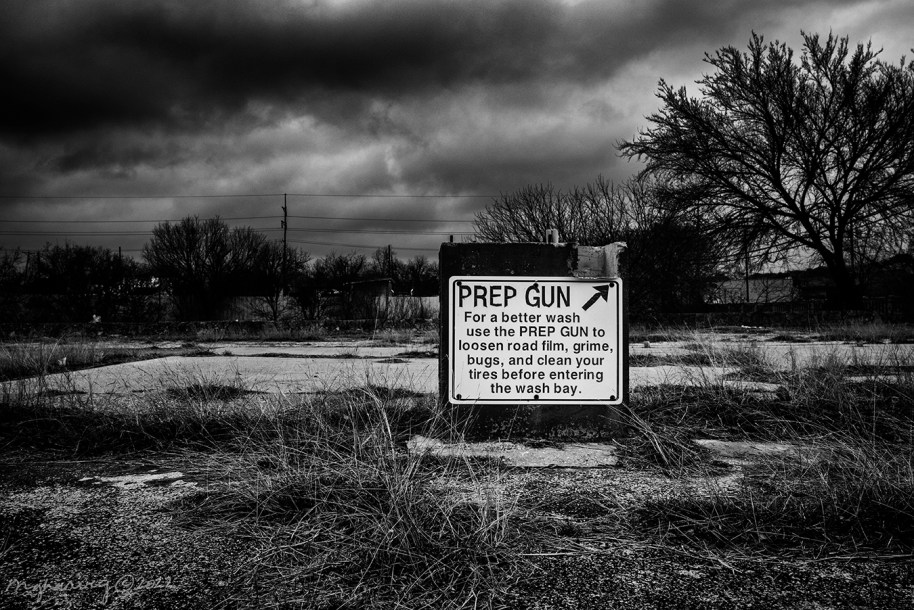 I’ve enjoyed photographing car washes for a while now. And on a recent trip, I discovered that out-of-business, mostly-demolished ones have a strong appeal, too. Plus, I got to find out that “prep gun” is an actual thing.