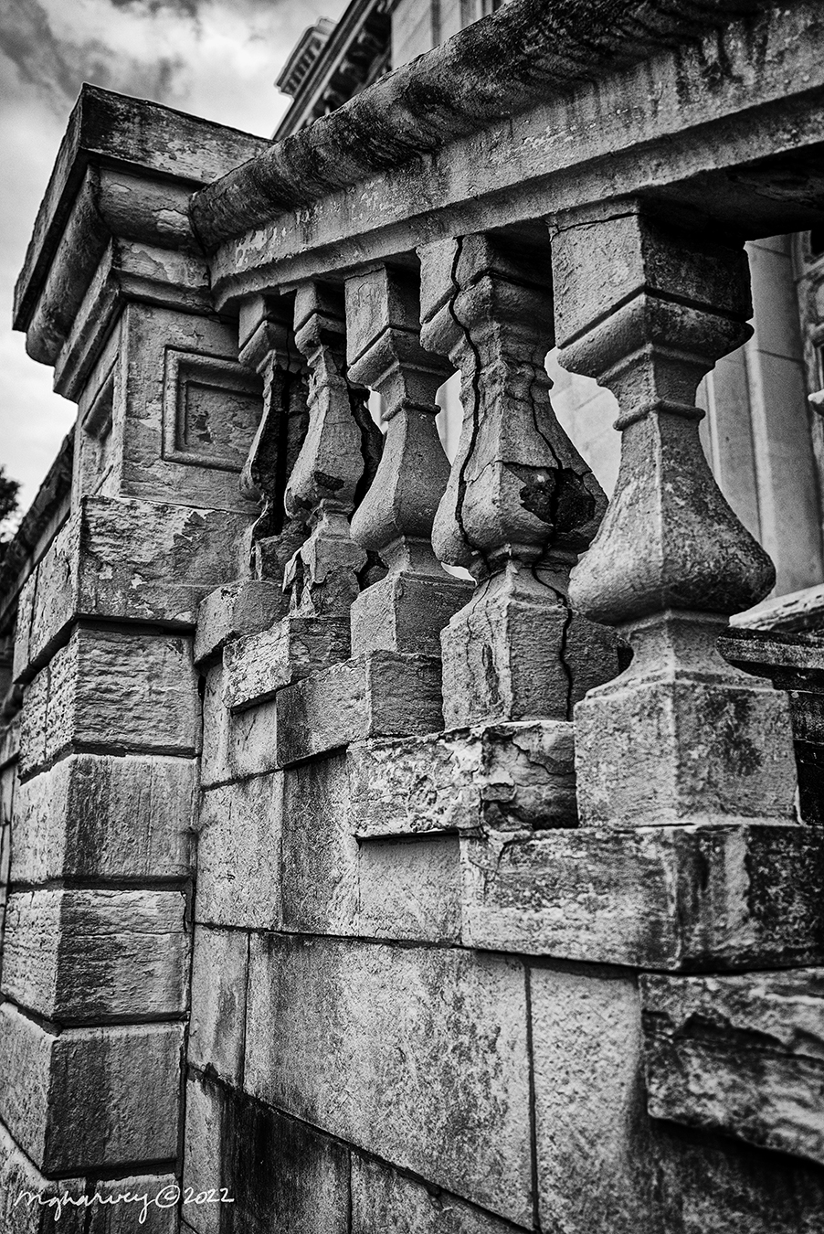 Or rather, it’s beautiful, as long as you don’t look at it closely. A close look reveals that things are worrisome over at the courthouse. The stone balusters are breaking apart, falling to pieces. There’s one place where the stairs have collapsed. Other places, pieces of the stone have just let go of the building. The longer you look, the more damage you see and the worse shape you understand the building is in.