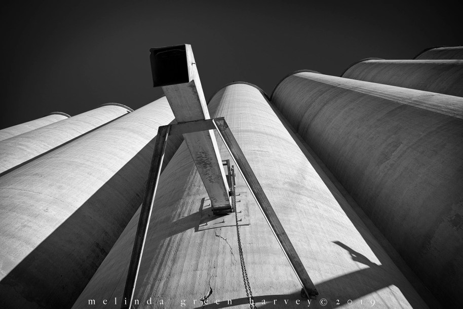 Well, who wouldn’t notice what the sun was up to on these concrete grain elevators and pull off the main street to get a photo?