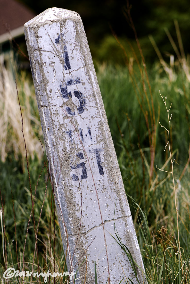 Above the Colorado Chautauqua, old concrete street markers are reused as bollards to mark the edge of the trail.