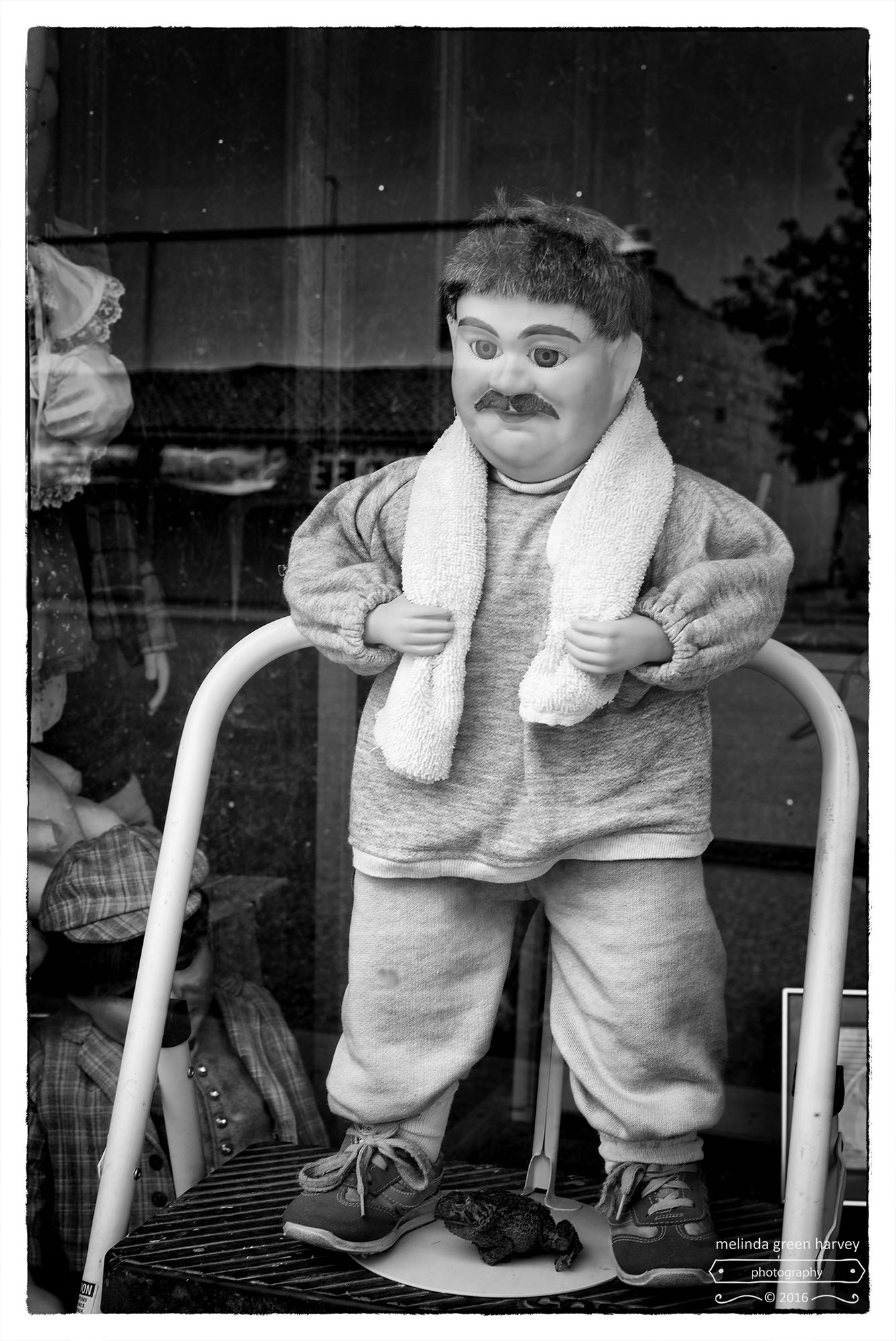 But this is odd, to say the least. And there are so many odd things to pick from, too. Why are his eyes different colors? What’s with that mustache? Is really wearing two left shoes? And if so, why? A stuffed frog? Does he have very tiny hands? Who’s the dapper gentleman with the pipe down there on the floor?