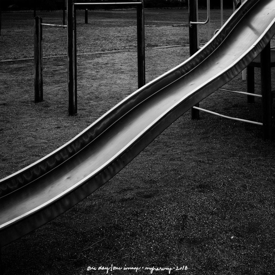 On an overcast morning, a well-used and well-polished slide caught my photographer’s eye. I won’t tell you how many kids I had to chase away so I could get this shot.