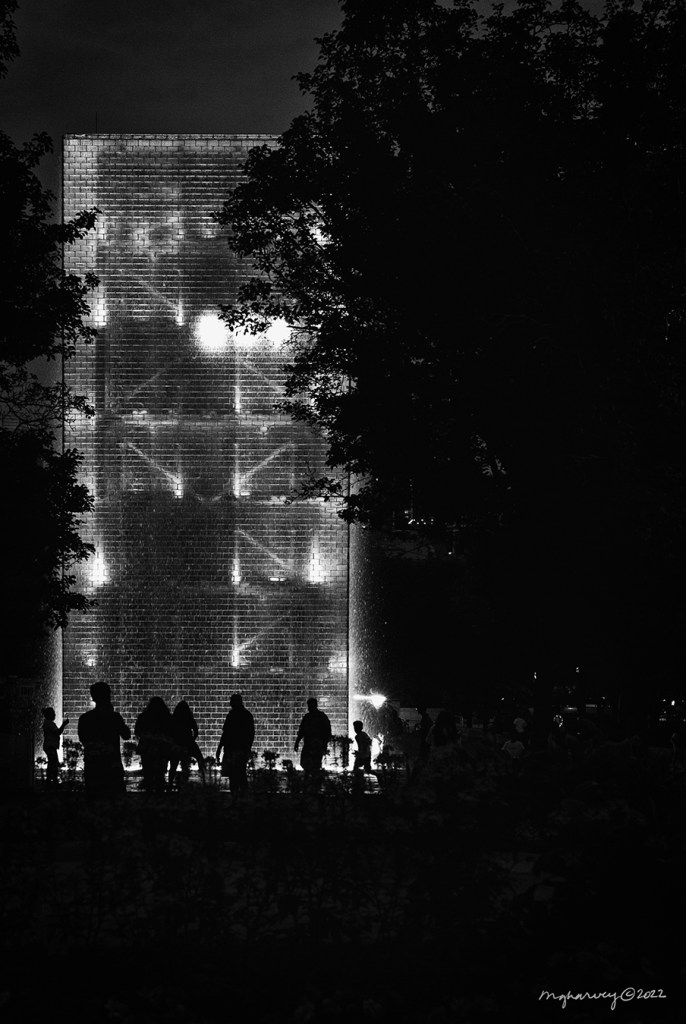 A completely unplanned nighttime walk around my little part of Chicago led me to a free concert at the Pritzker Pavilion, some attempts at low-light street photography around Cloud Gate, and this set of silhouettes against Crown Fountain. It was my last night in the city and I think it provided me with a lovely parting gift.