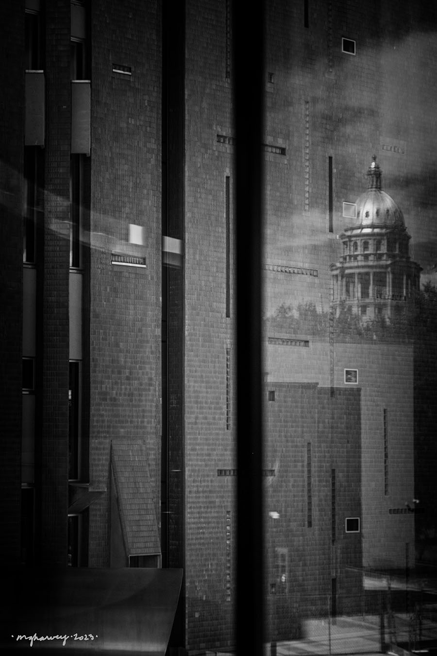 And so, here I present the Colorado state capitol dome reflected in a big window at the Denver Art Museum.