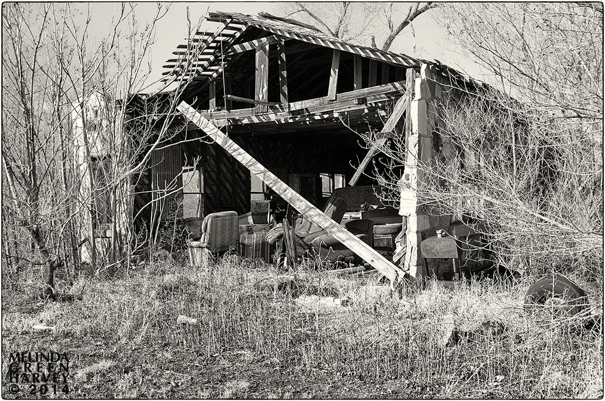 This shot required the usual two u-turns on the highway. By the time I’d realized I was seeing a building that was falling down AND was full of old chairs, we’d already driven by. U-turn #1 got us back so I could get some shots of the place.