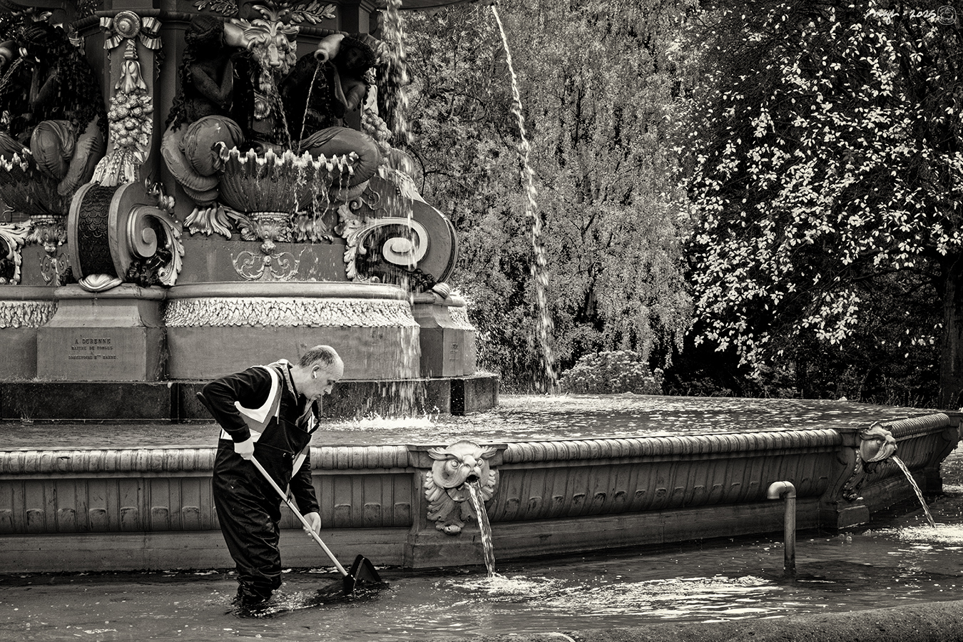 This guy had what looked like an endless task: he was scooping fall leaves out of the fountain. He was doing a good job and all, but it must have been a little disheartening when he stood up and stretched out his back and then saw how many more leaves were still on the trees.