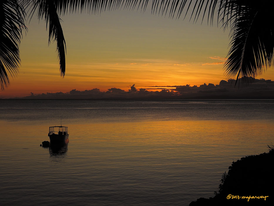 Anyway, here’s what I saw on my trip. I realize that it’s just full of cliches, from the palm-tree fringe framing the shot, to the boat bobbing in the water, to that sunset. But, still: it’s what I saw.
