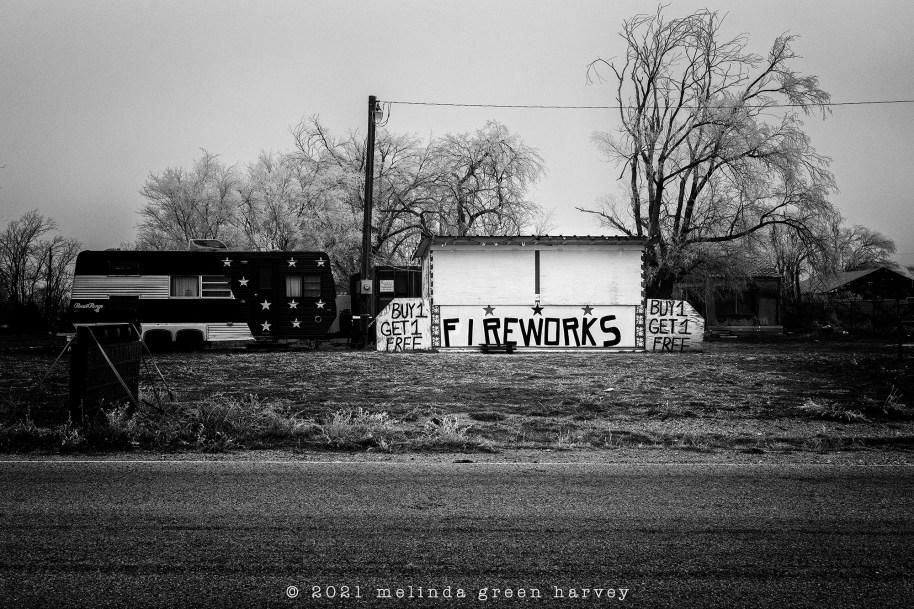 But I feel like I might be coming back. On Thursday morning, I noticed the way the sunlight played across this roadside fireworks stand. And on Friday, I brought my camera, pulled off the road, and made a few images. It felt right.