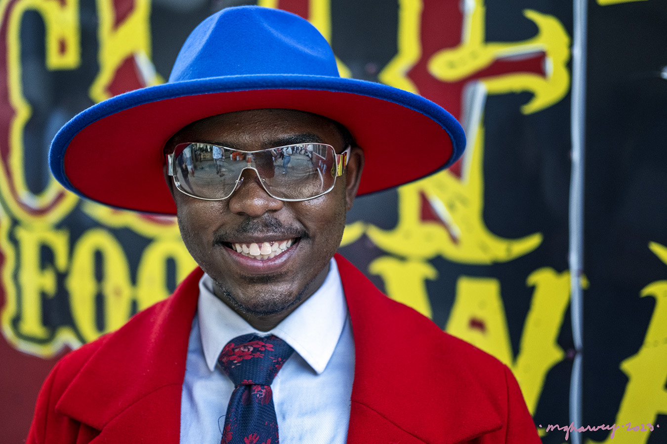 I saw this well-dressed person at the art trail the other night; they were in line at a food truck and I sure didn’t want to delay their dinner by getting a photograph.