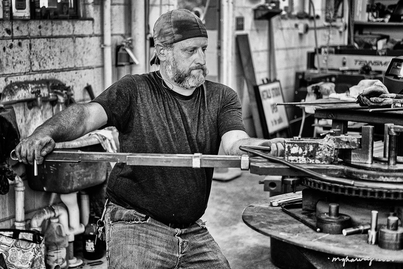 This is Chad. He’s a big deal in the local arts scene. And here he is at First Friday the other night, working on a new metal sculpture.