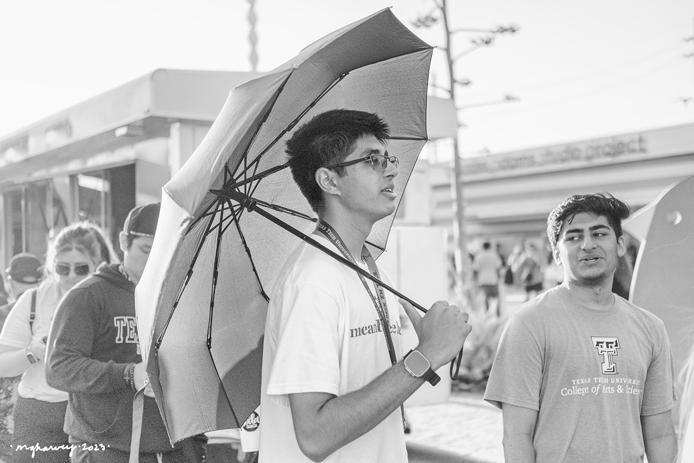 This guy? He was the smartest person on the whole First Friday Art Trail. It was hot – really hot, like 103° – and he had the foresight to bring his own shade structure with him.