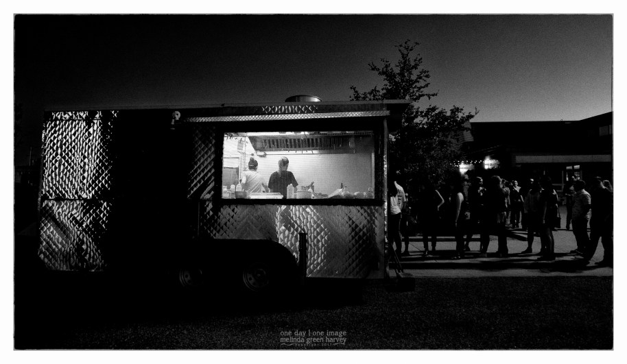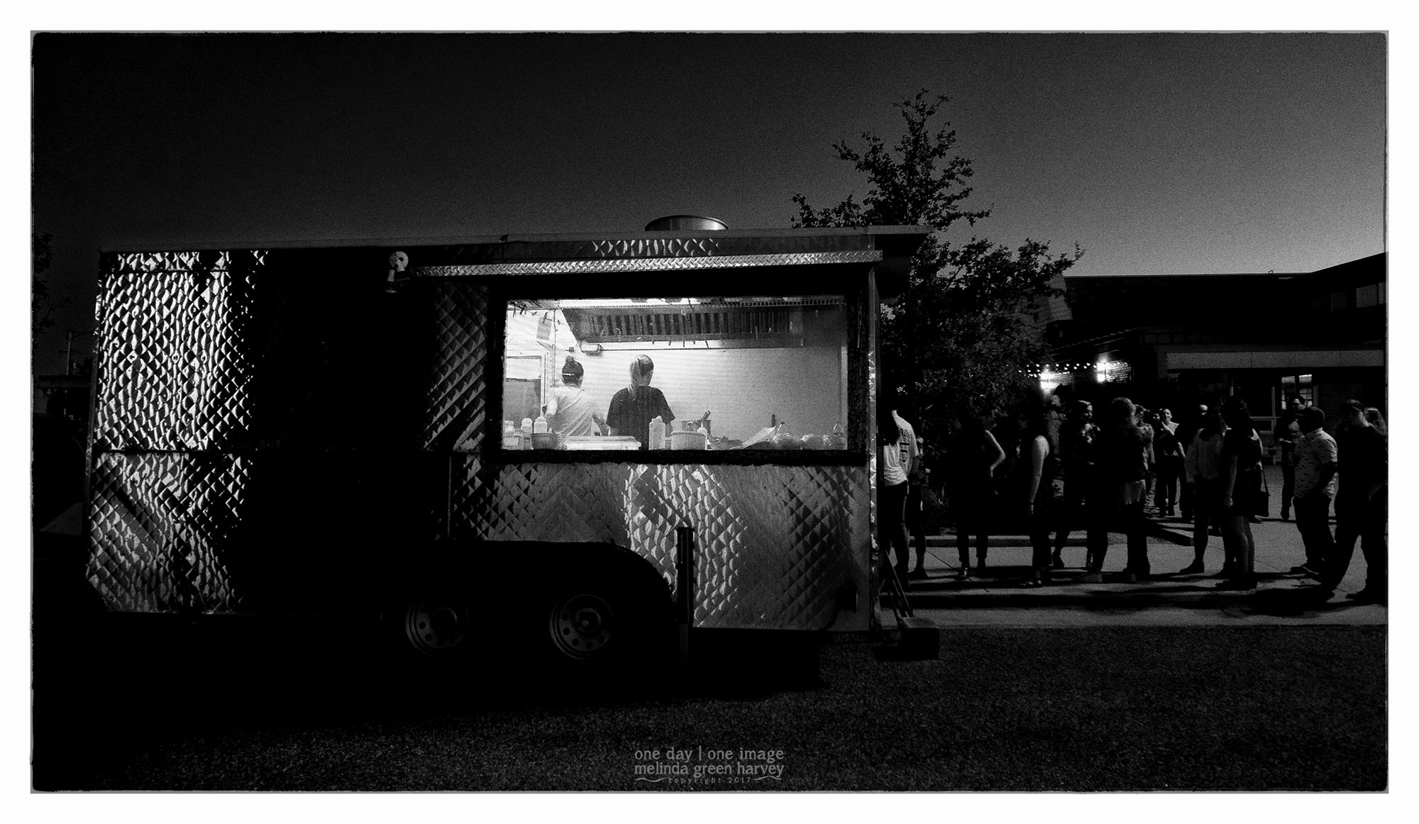 Every first Friday, no matter the weather, folks turn out for the First Friday Art Trail. This month, in addition to what you think of as “art” there were bands, dancers, costumed actors, food trucks, and lots and lots of people. My informal survey of the food trucks indicated that this one, the taco truck, was the most popular.