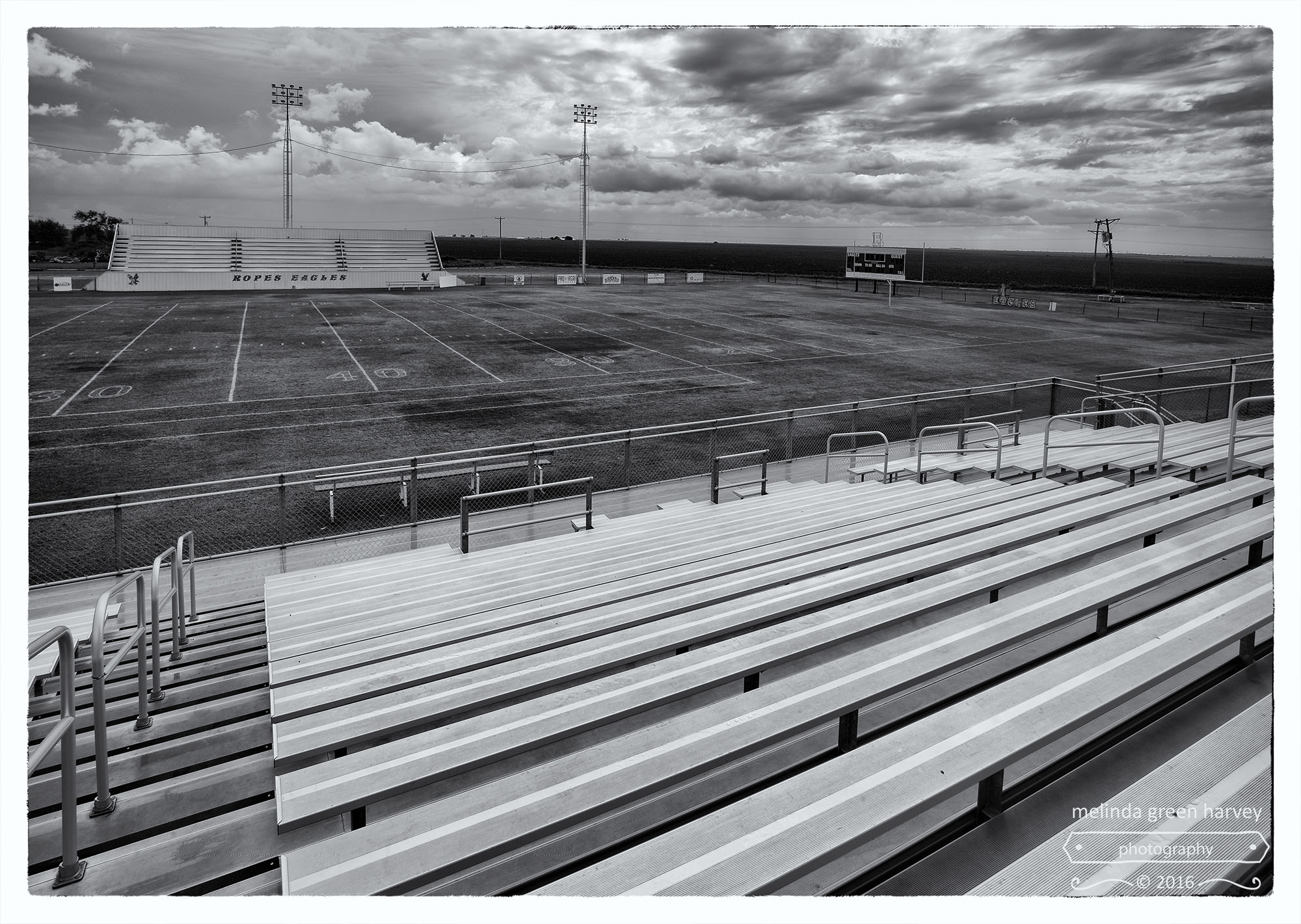 My photographer pal Ginger Sisco Cook was in town and we spent a lovely Saturday wandering around to see what we could see. And to photograph what we could photograph. And one thing we found was the football stadium in Roosevelt, Texas.