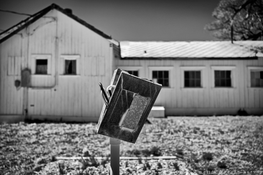As I mentioned yesterday, I will always look inside abandoned buildings. And I will frequently photograph the interiors through dirty windows; most always the camera catches more than my own eyes will see so it’s fun to look at the images later to see what I got in the photograph. The Patient Spouse is convinced that one of these days either the camera or I will see something awful…to date, he’s always been wrong. Fingers crossed….