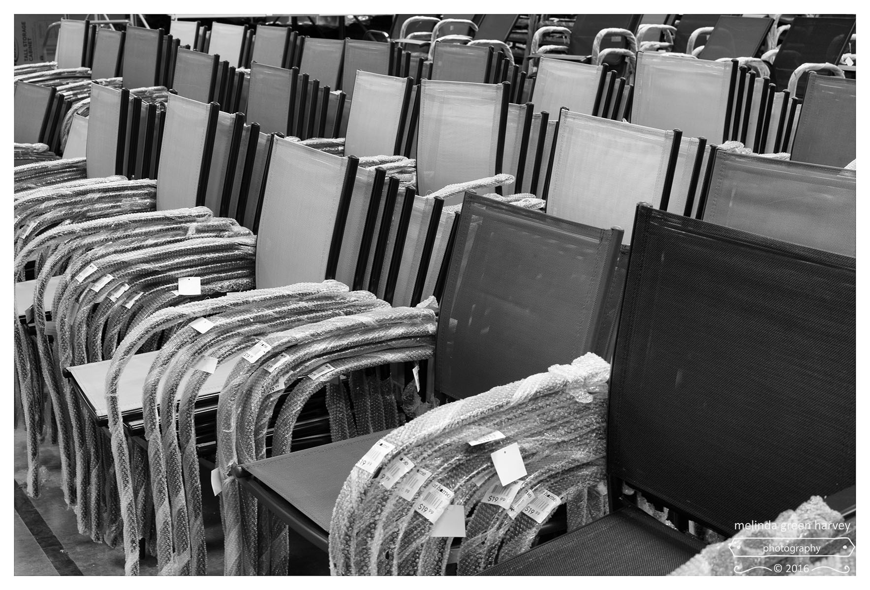 A couple of years ago, a windstorm with gusts around 100 mph (no kidding!) damaged some furniture we had out at our place in the country. We* tried to fix the broken pieces, but finally abandoned that plan. As a result we were shopping for new furniture. I, of course, was more interested in photography than chairs…