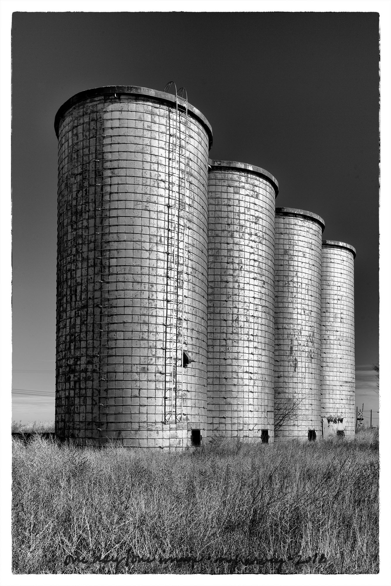 This used to be part of a little complex on the edge of the town where I work; there was a cotton gin, the gin office, and this building. The gin stopped ginning. The office turned into a place called Larry’s BBQ, which had live music at lunch every day and where if you ordered anything other than a burger, you’d’ve made a big mistake. Then a chain BBQ place came to town and Larry’s closed up. After a few years, someone driving a bulldozer pushed Larry’s place into a pile, and someone else with a front-end loader loaded Larry’s into a container and hauled it (him?) away. Last year, someone else (I guess) spent a very long time taking the cotton gin down, probably to salvage the metal building components.