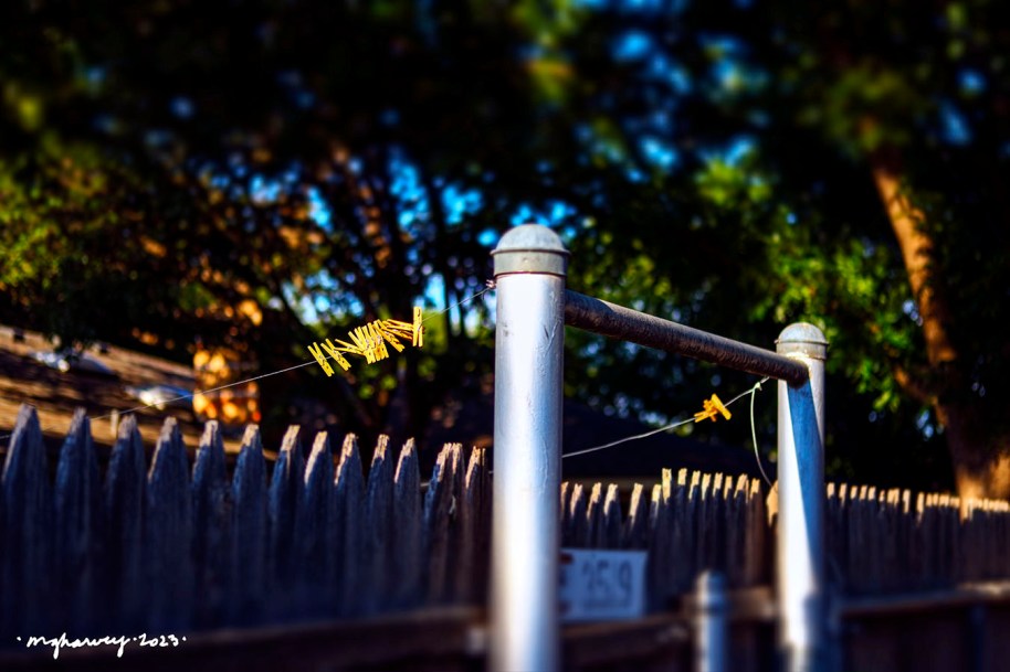 I came home the other night and the evening light was right there on those clothespins. I hurried inside to get the camera…