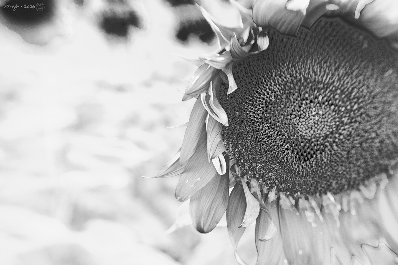 A monochrome of a sunflower field seems like the floral equivalent of a monochrome photo of a rainbow. So I did it.