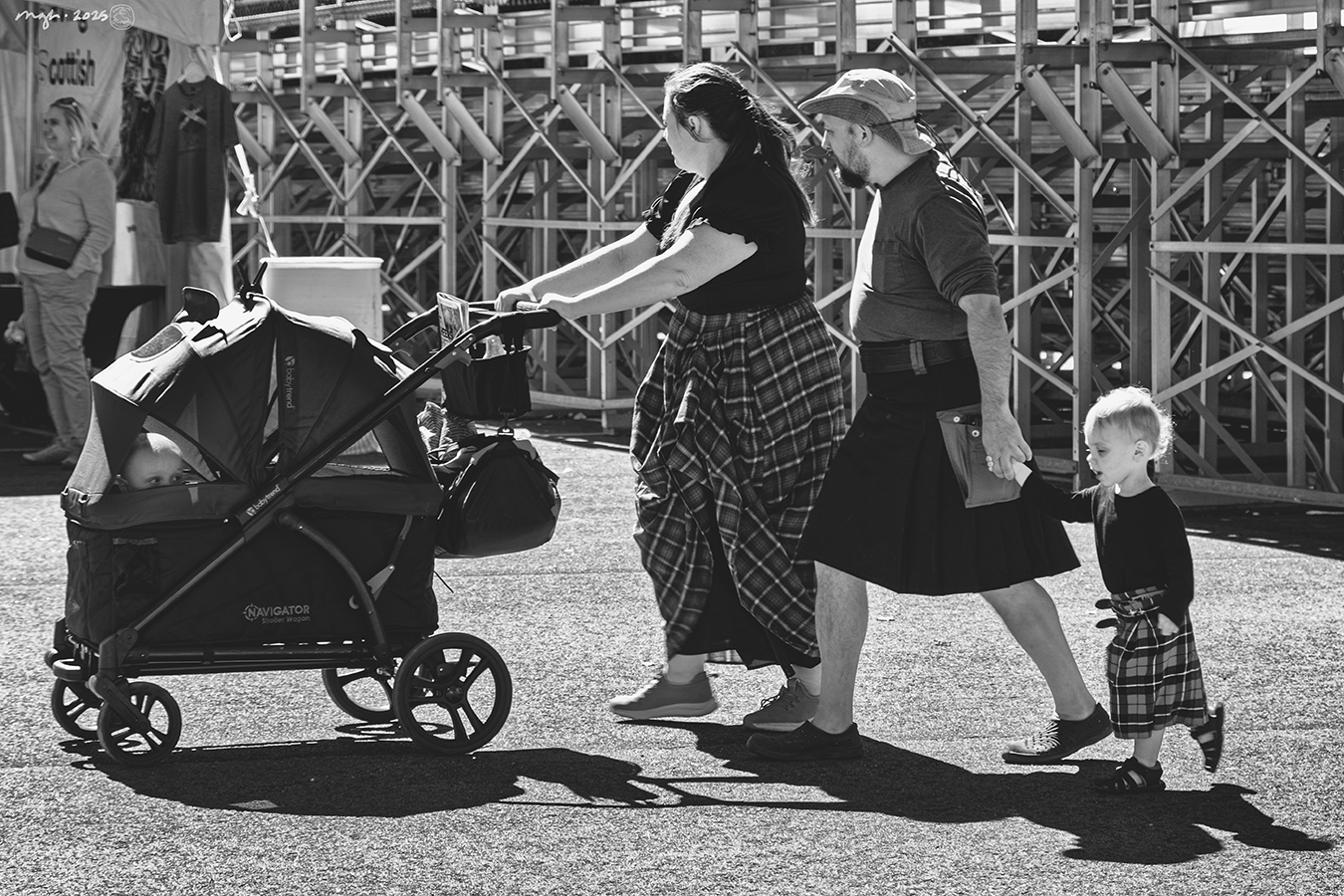 One hour after I spotted the kid with the safety-pinned kilt, I saw them again, with their whole family. But this time it was the kid in the buggy who captivated my attention. You know I’ll always go for a strong side-eye…