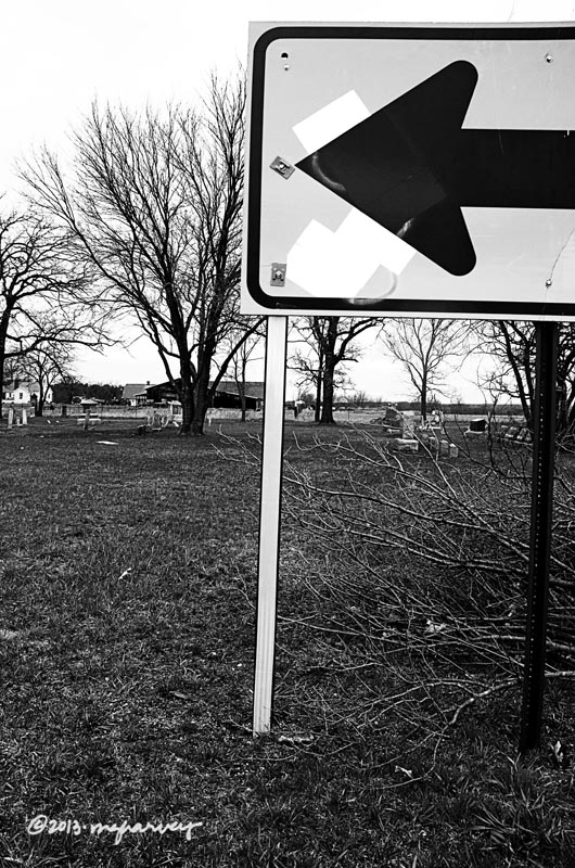 My guess is that a lot of drivers (going fast, maybe, or driving at night, or texting) missed the left-to-right dogleg turn on Sharon Hollow Road, right there at the cemetery, and that it happened so often that a warning arrow was installed.