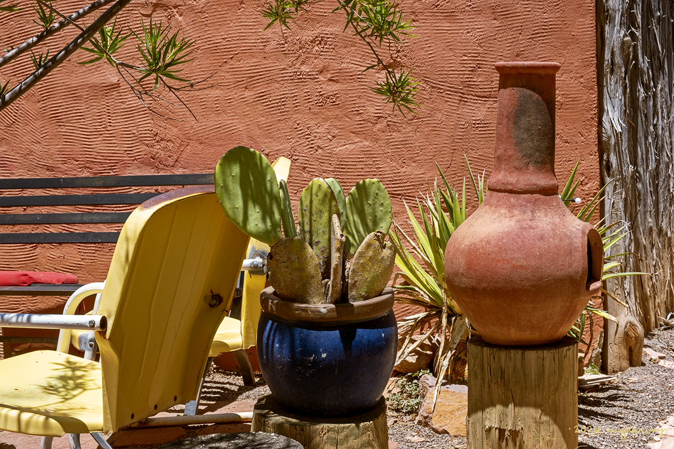This sun-dappled courtyard could not be more in the spirit of far West Texas – the colors, the textures, the plants, the shade, the sunlight, the sounds all combine to make it the sort of place I could happily spend the afternoon. Or, perhaps, several afternoons and some nights and a morning or two as well.