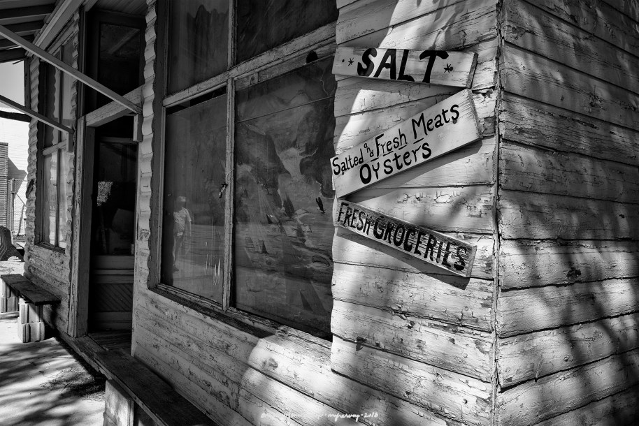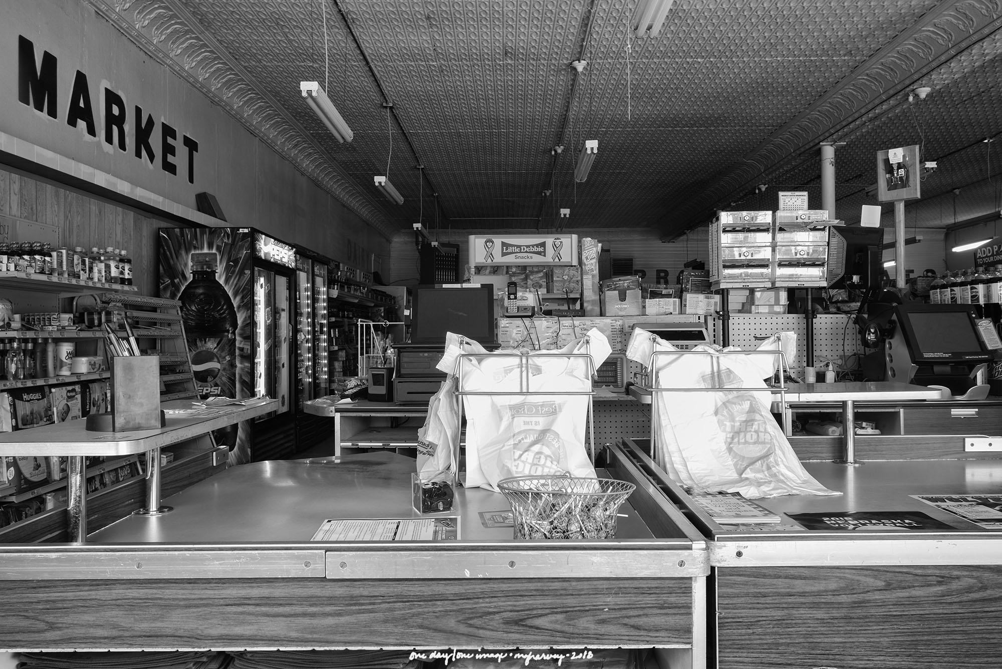 The Patient Spouse and I have just returned from a drive across Nebraska, where we visited some of the towns he lived in as a child. This grocery store was there when he was a kid, and I sort of think the very same person still works there as a cashier… The place is closed on Sunday, so we’ll never know for sure.
