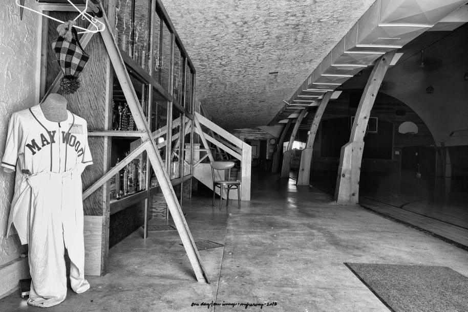 If you go to Maywood, Nebraska, and look through the door of the community hall, you can see a chair, a baseball uniform, a display case full of trophies, a basketball court. And you’ll also see last winter’s hat, hanging upside down and waiting for cold weather to return.
