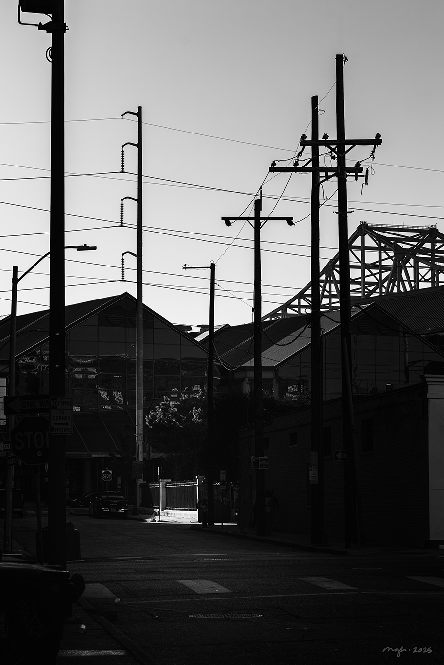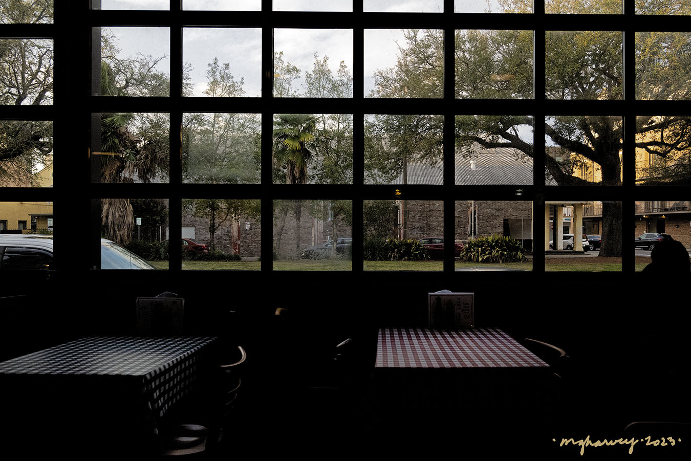 I saw this scene one morning in New Orleans, only about three blocks from where I worked when I was in grad school. In those days, way up on the fourth floor of an office building, we had a daily view of construction of one span of the bridge you can see here. I’d never seen it from this angle before, and how nice of the sunlight to land right there on that little piece of wall…sometimes NOLA will hand you a gift.