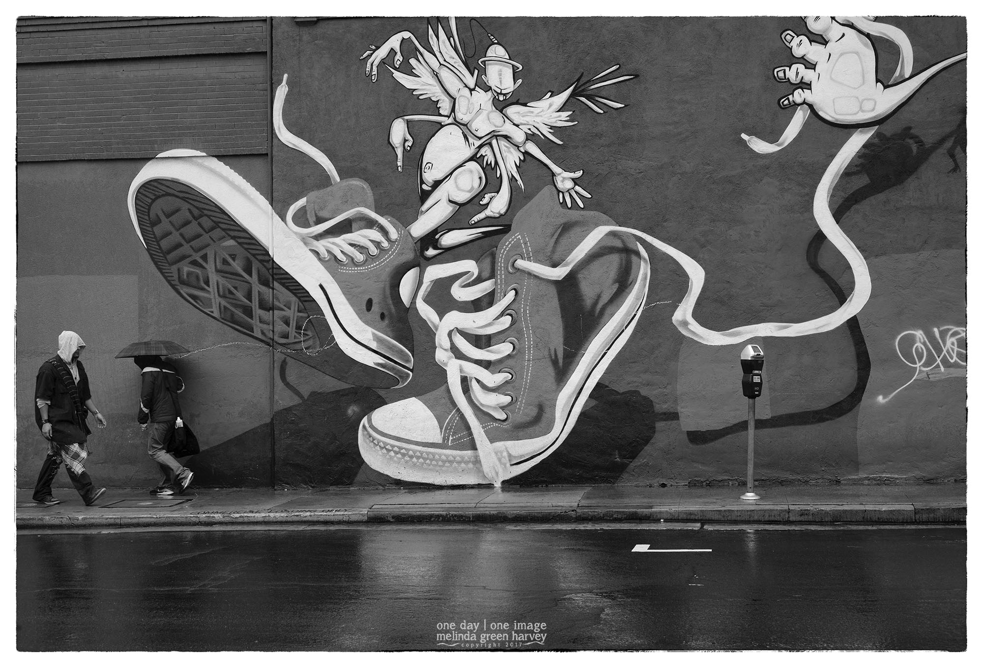 Seriously, those people need to hurry, or that giant shoe is going to squash them.