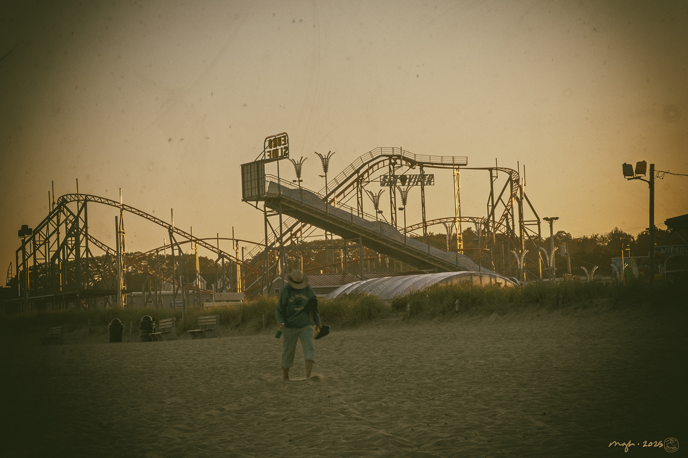 I believe that seeing things in the off-season (like this beach and amusement park) is somehow related to my affection for looking around the back of buildings.
