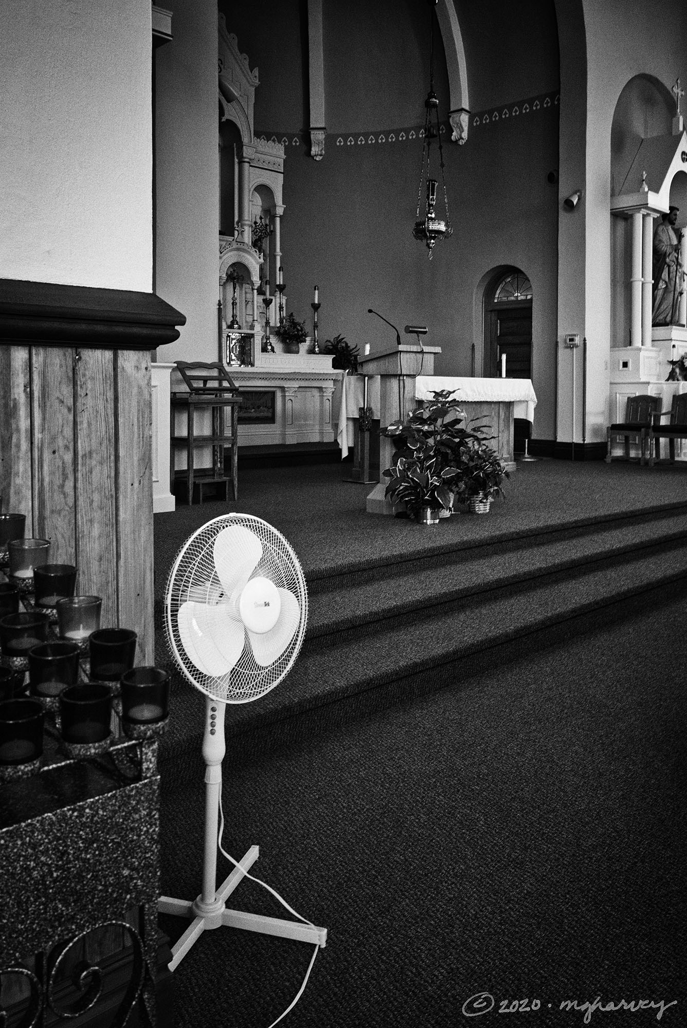 I love to be the only person in a church, and if I’m there at the time of day with sunlight slants through stained glass windows, that’s a nice bonus. I was particularly fond of the way the crosses over the doors got progressively lighter.