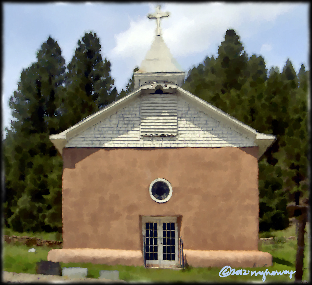 On the way from Pecos, New Mexico, into the Pecos Wilderness, travelers will pass by a little adobe church. Some travelers will stop to look around and make some photos. And some of those travelers will walk around the church and peer into a small, dirty window to see what’s there.