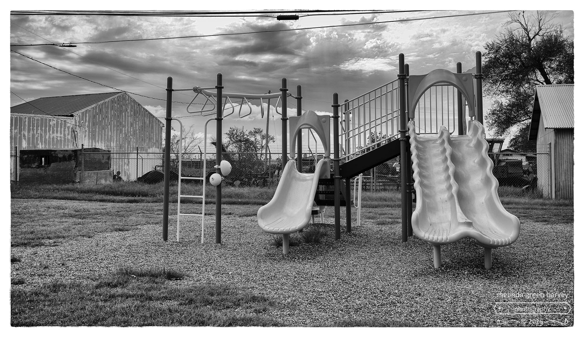 On an overcast morning, a well-used and well-polished slide caught my photographer’s eye. I won’t tell you how many kids I had to chase away so I could get this shot.