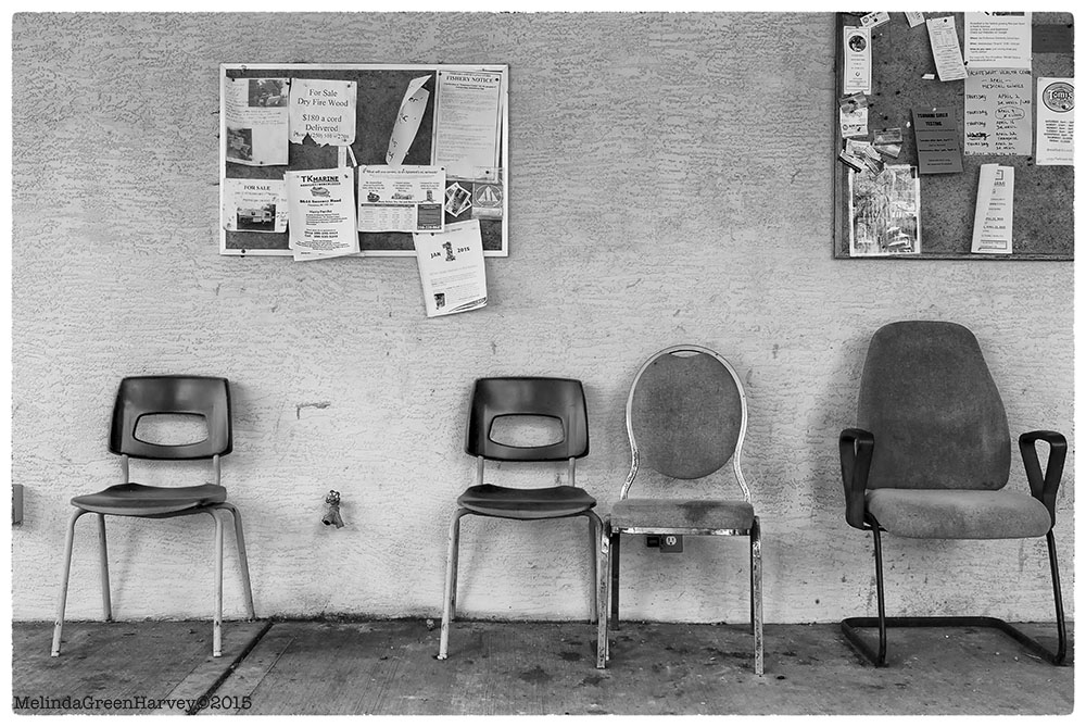This was the scene on the porch of a little food market in Port Renfrew. While we were there, a man and a dog arrived. The man was driving a three-wheeled motorized scooter, which traveled so slowly that the dog could easily trot alongside. The dog had a tennis ball in its mouth. The man got off the scooter, filled a plastic jug from the water spigot between the chairs. Then he and the dog continued along their day’s journey.
