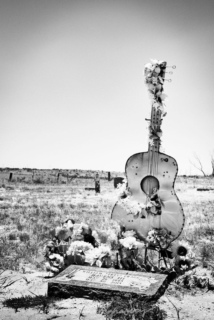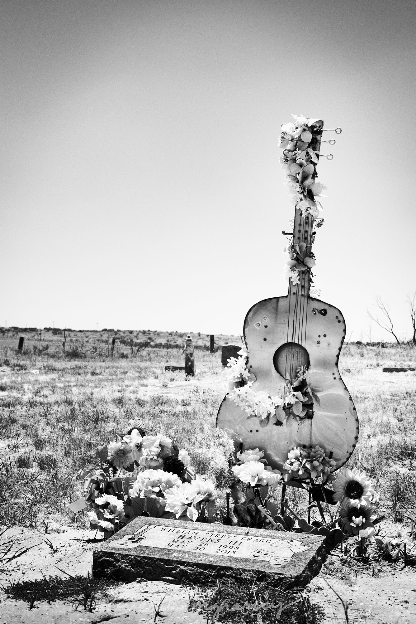 I visit cemeteries a lot; you might think that after all this time, they’d start to look the same or run together. Sometimes I think that’s about to happen, but then I see something like this, a metal marker in the shape of a guitar. And a sad story, too, since the young man who dreamed of a career as a professional actor as a professional actor passed away when he was only 20 years old.