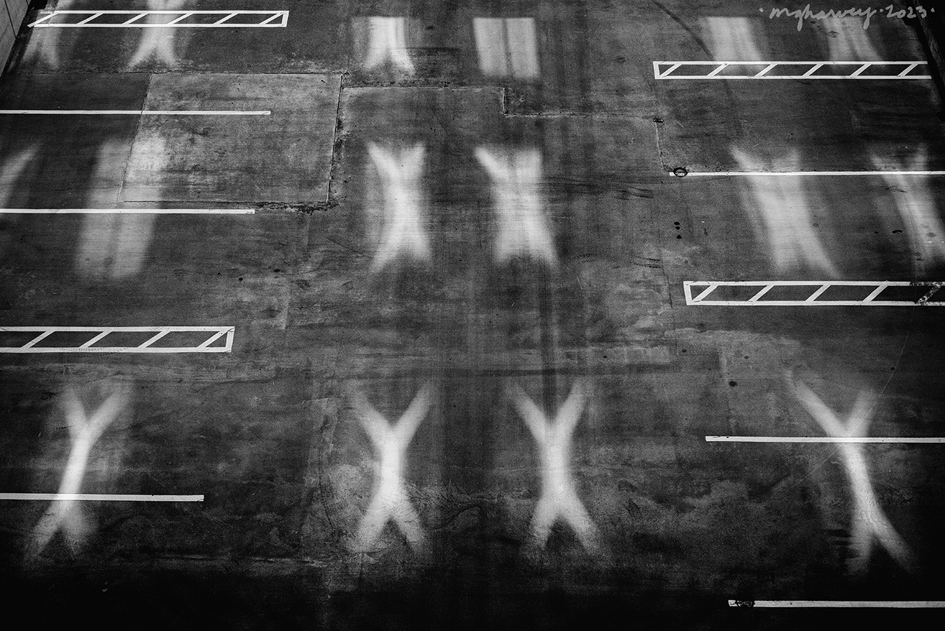 If you combine a little bit of impending boredom, a camera outfitted with a vintage lens, an 8th floor hotel room, a view of a parking deck, morning sunlight, and a cold-ass day, this is what may happen.