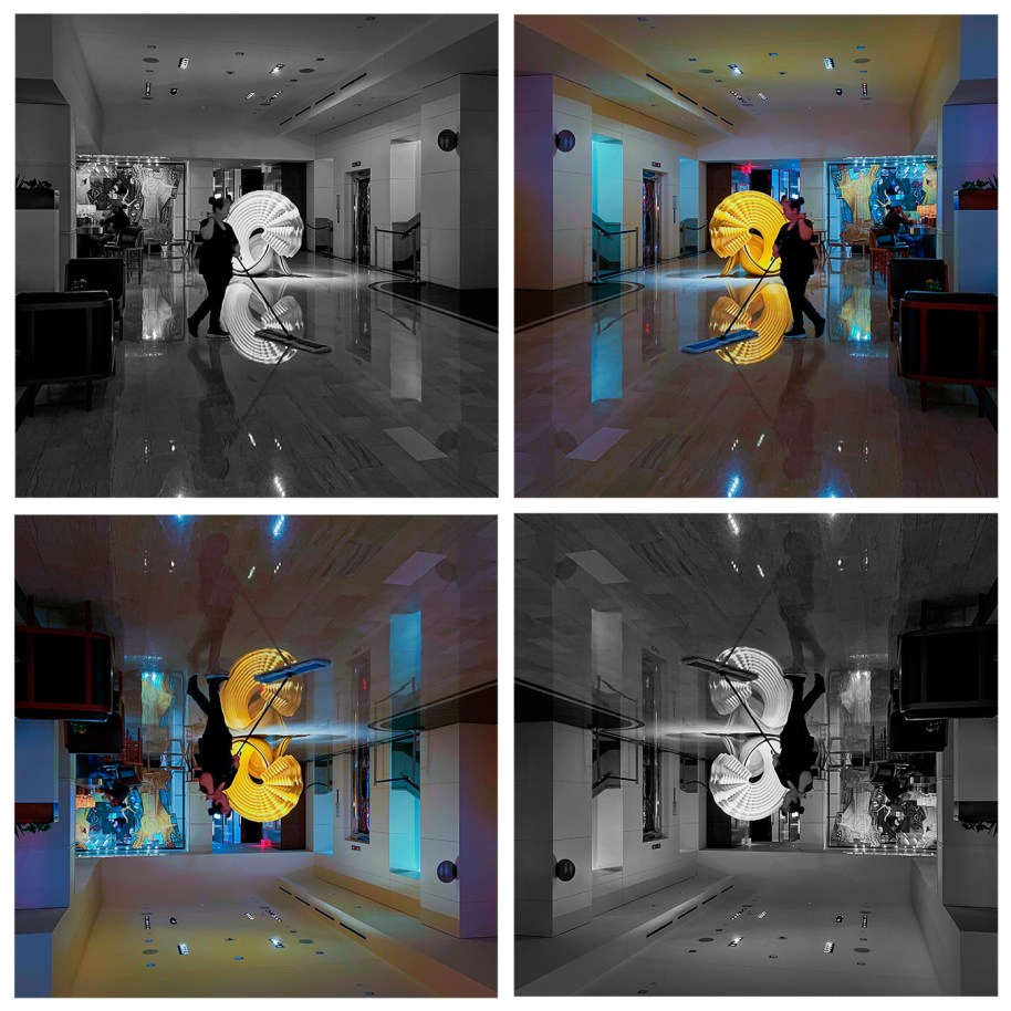 A before-dawn hotel lobby had some things of photographic interest, like the candy machines. But even better than the machines were the paper cones on top of them paired with the cone-shaped reflections on the brick wall. Goodness.