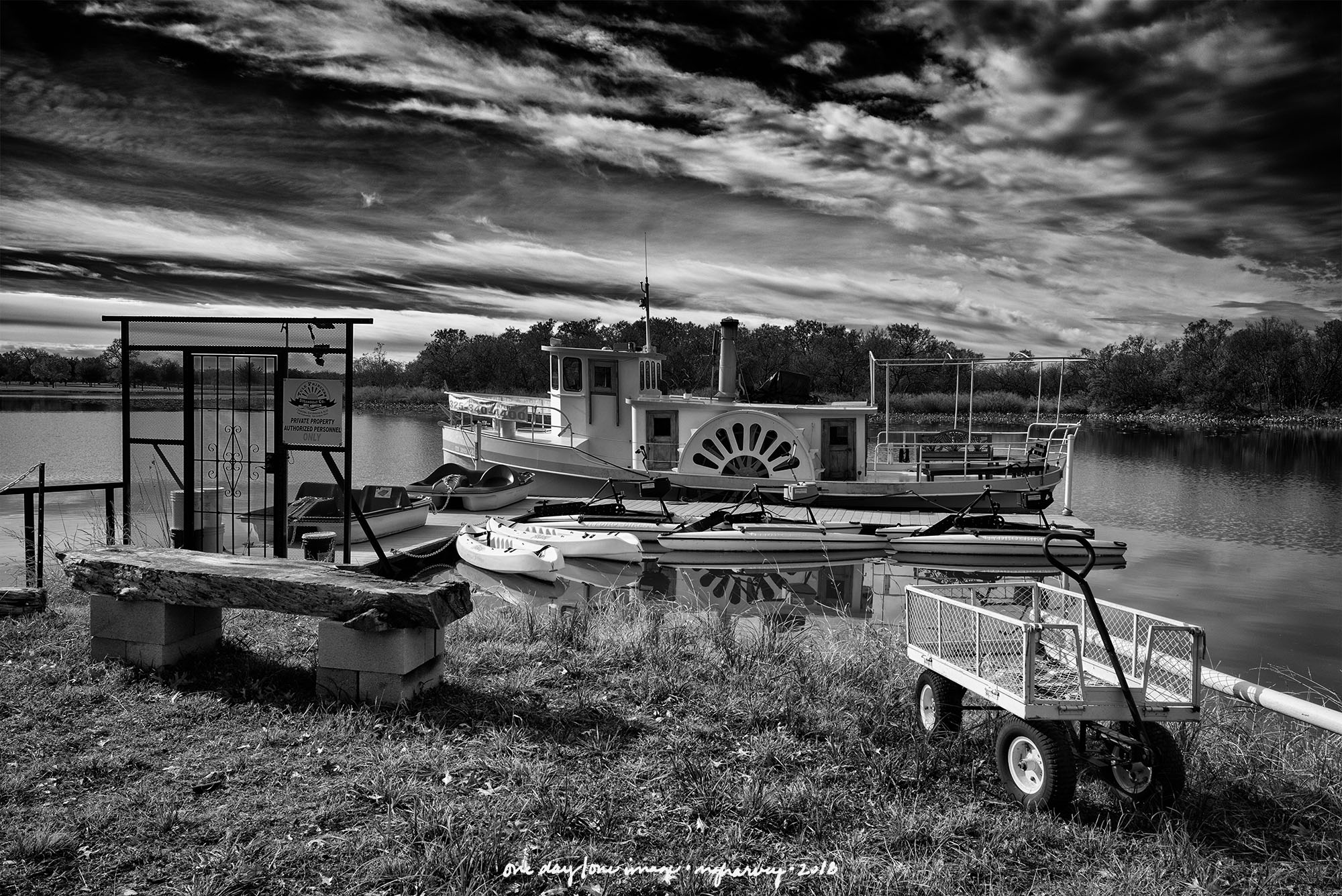 Another thing that’s funny to me is the protective covering over the paddlewheel. But the sign says “Charters, excursions & fun!” so I feel like my amusement is somehow sanctioned….