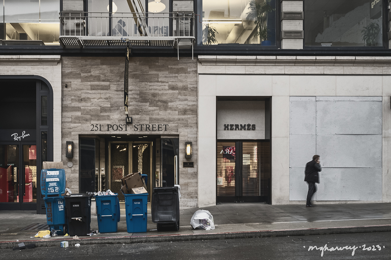 Did this guy break my composition by walking into it? Or should I pretend I planned it that way? Was it wrong to line up the pedestrian across the street with the mannequin? Should more stuff be in focus? Should it have been processed in black and white?