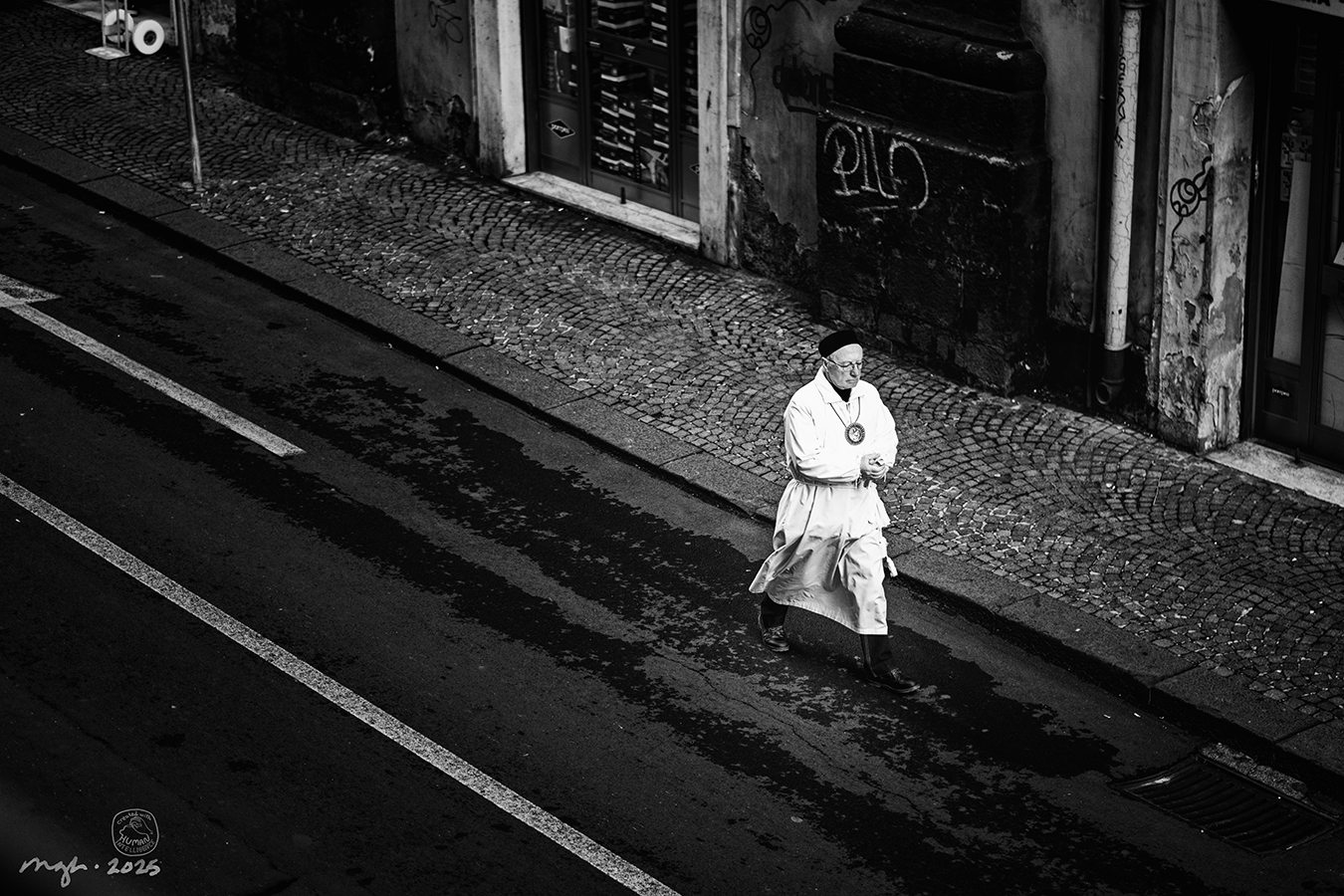 It wasn’t long before the streets would be filled with people, many of them dressed in the traditional feast-day clothing like this gentleman. This moment, although I didn’t realize it then, was the only bit of quiet for a long time: the parades celebrating the Saint are loud and joyous.