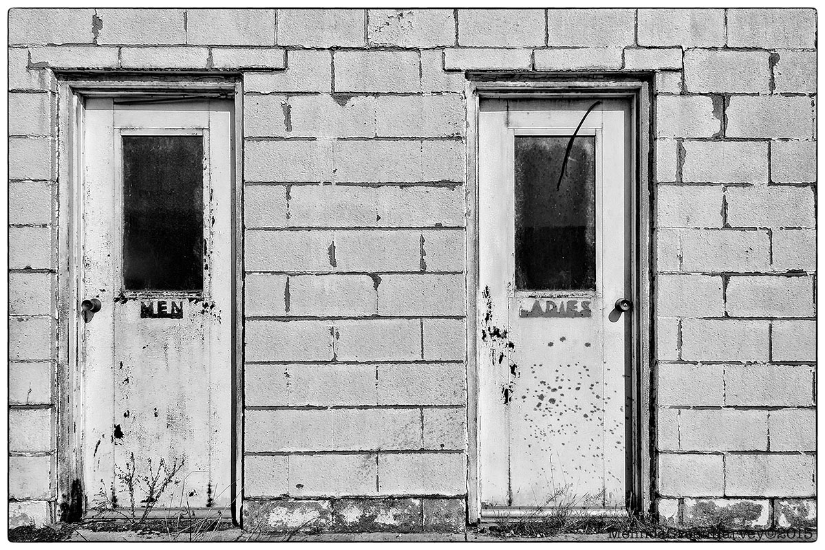 My traveling companion for the day spotted an un-boarded door around back, which gave us a nice view down the hallway.