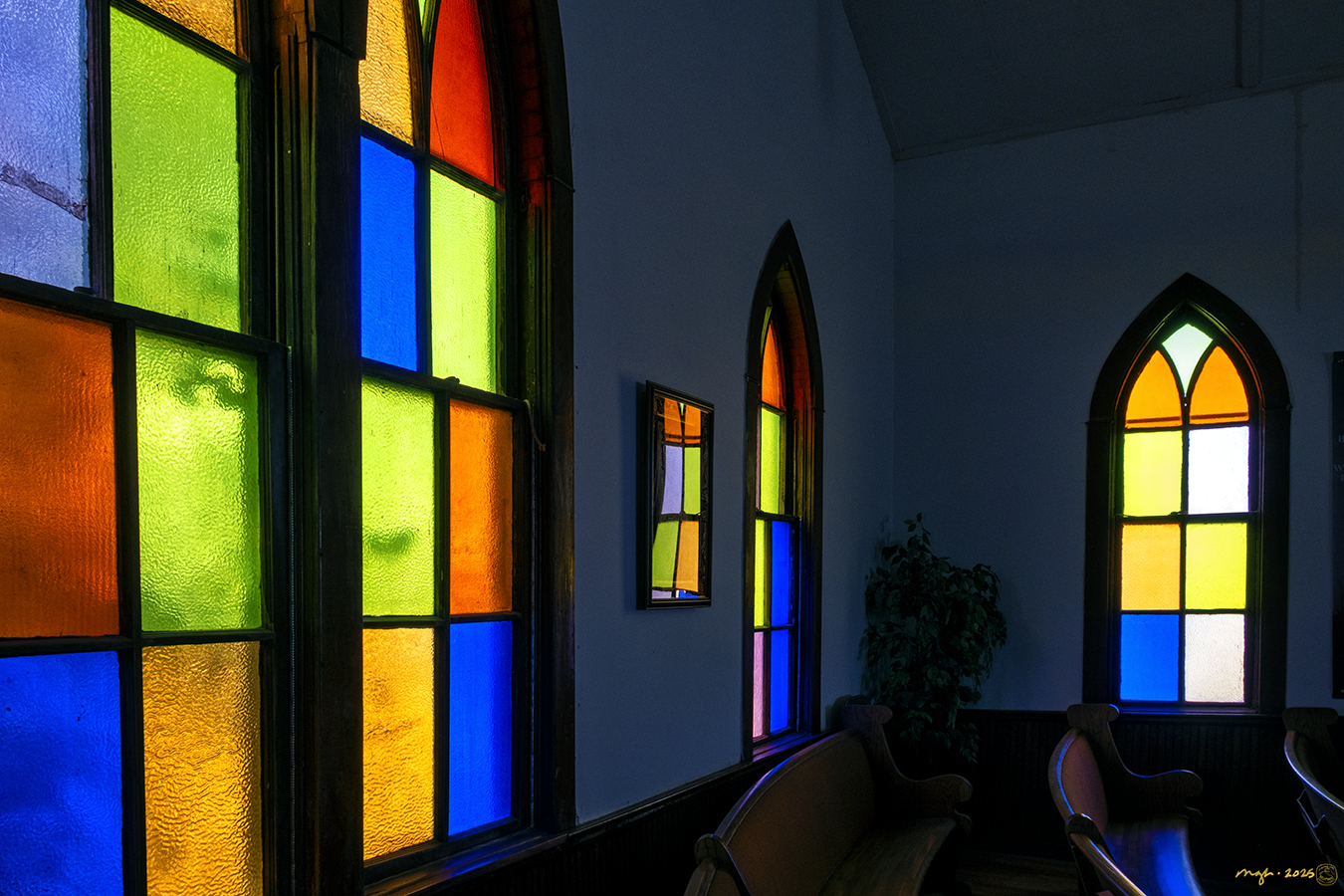 I believe it is possible that renowned Dutch artist Peet Mondrian (1872-1944) attended church in Nara Visa, New Mexico. Or least helped out with the windows.