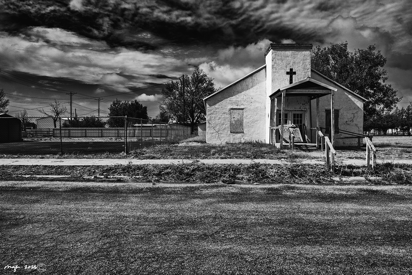 I was in Sudan (the town, not the country) the other Sunday morning. This church seems to be abandoned, but there was some preachin’ going on a block away in the town square. It was echoey and I couldn’t make out words but I knew it was a sermon from the cadence of it.
