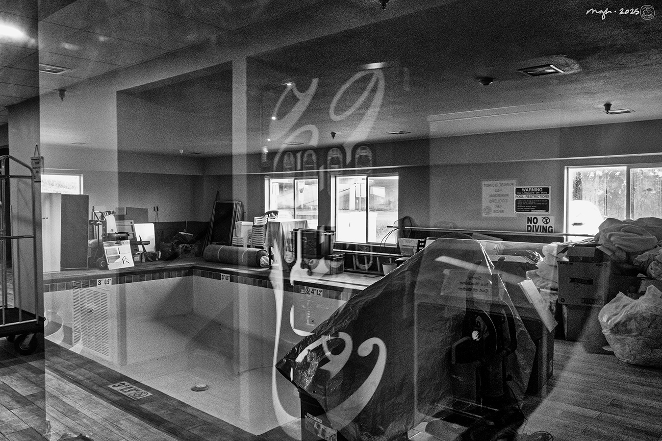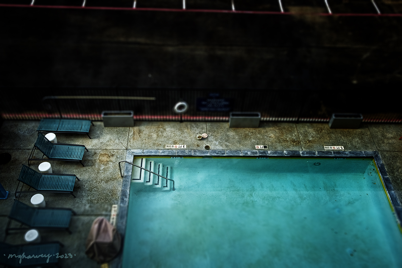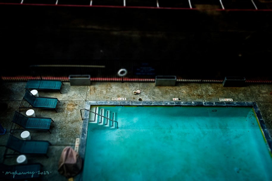 And that, naturally, led me to make this photo of the swimming pool from the 4th floor elevator lobby.