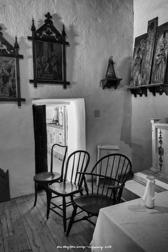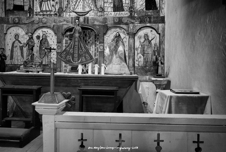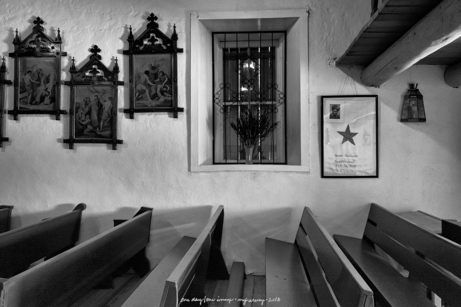This was a rare treat – finding the tiny, ancient church in Truchas unlocked. The caretaker let us look around, and she gave us a bit of history of the place. This altar screen, for example, dates from the 1820s.
