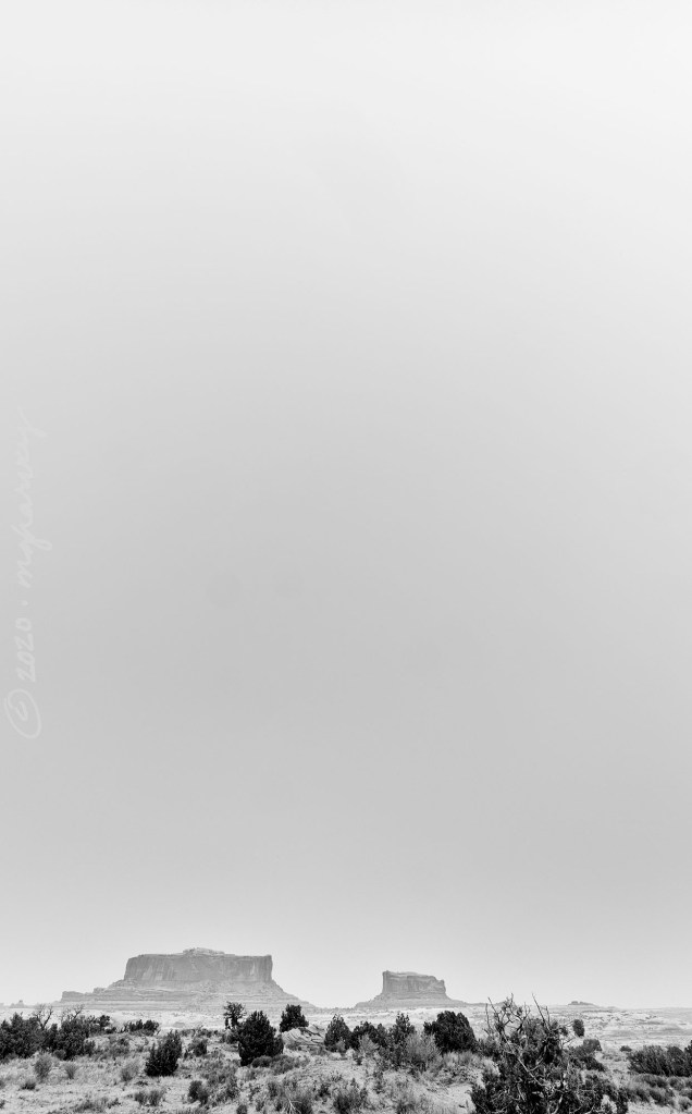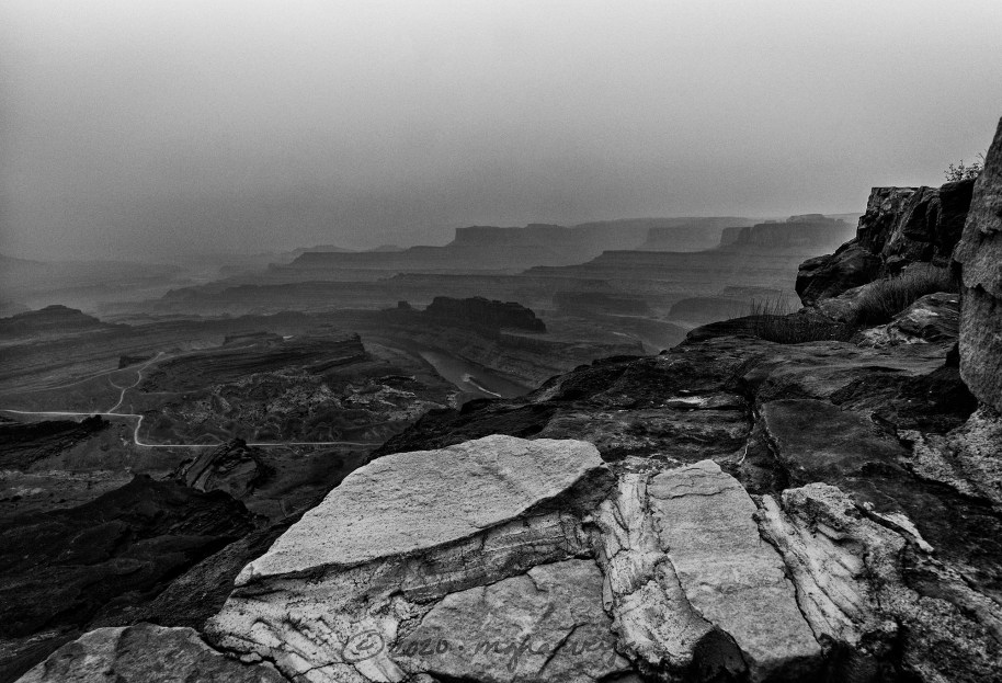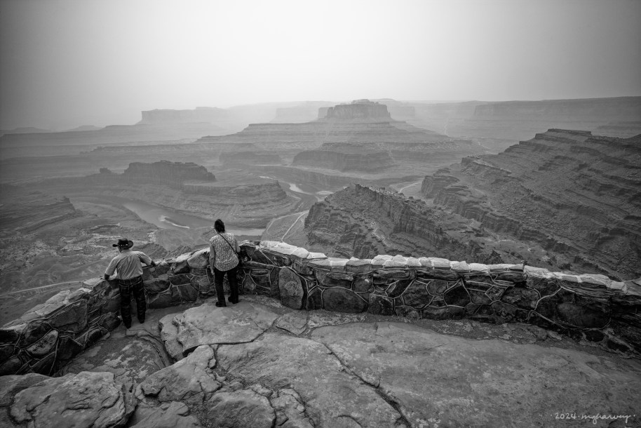 A devastating wildfire season on the west coast gave us a much different view, with smoke settling into the canyons and giving everything a weird, muted look. (This was shot at mid-day.) But you know how I am: at least the situation gave me something different than the usual shots of bright blue skies, vivid red rocks, and a blue-green river, and I wasn’t too disappointed about that. “Anyone can get those shots,” I said to myself in a tone that was probably too smug for the actual situation.