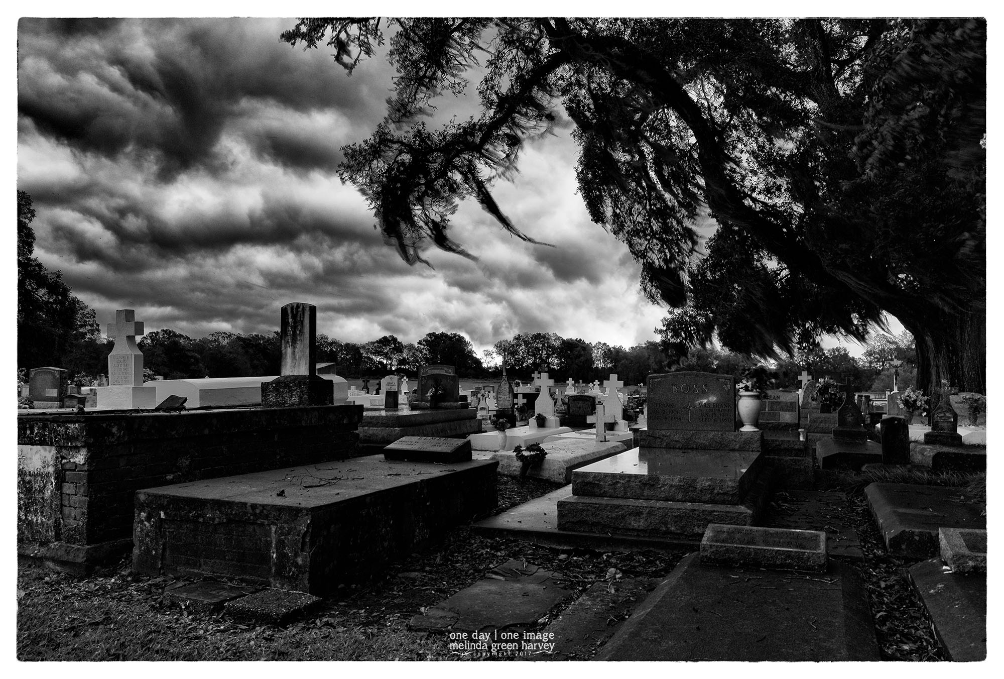 In just a matter of minutes, the weather changed. The thin grey clouds became low and heavy. The wind picked up, whipping the Spanish moss around. The trees groaned against the storm. And the photographer was very content with the entire situation.
